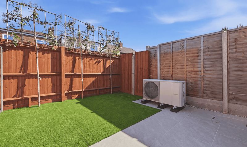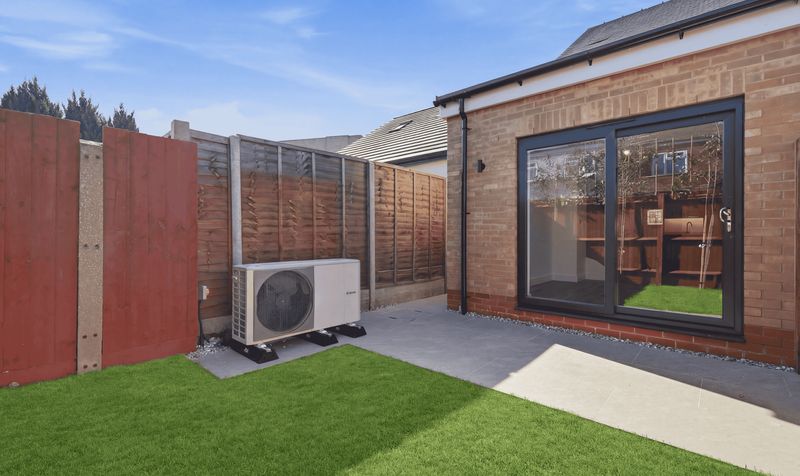Outside, the garden is a blank canvas that’s ready to landscape as you wish. A smart, pale grey patio area provides the perfect spot for eating alfresco and enjoying the sun. A side passage provides access to the front of the property, where there is a shared block-paved driveway providing off-street parking with an EV charging point.
