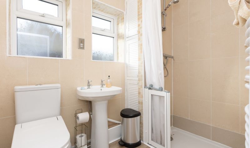 At the front of the property are two bedrooms - both comfortable and well-proportioned doubles with neutral carpets. The principal bedroom is spacious and has a curved bow feature window which introduces plenty of natural light. It’s an airy room with a good amount of space for furniture. The second bedroom is another well-proportioned room with a natural colour scheme. Completing the property is a spacious bathroom, fully tiled in a neutral colour and featuring a modern white suite and walk-in shower.