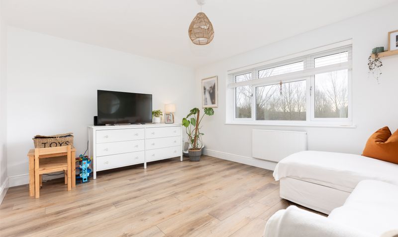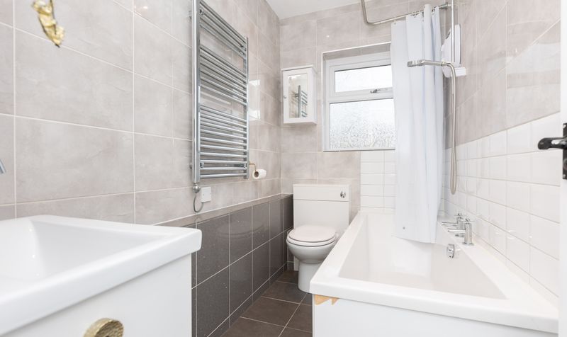 On the second floor are two airy and well-proportioned double bedrooms. The principal bedroom is spacious with a large window and plenty of room for additional furniture. Featuring LED spotlights and a neutral colour palette, the bedroom provides a calming sanctuary. The second bedroom has also been stylishly decorated. It’s a versatile room which could easily be repurposed as a home office if required. In keeping with the rest of the property, the family bathroom is stylish and contemporary, fully tiled in contrasting tones of grey and white. The modern white bathroom suite includes a full-size bath with shower over and there is a heated chrome towel rail. Completing the second floor are two useful storage cupboards on the landing.