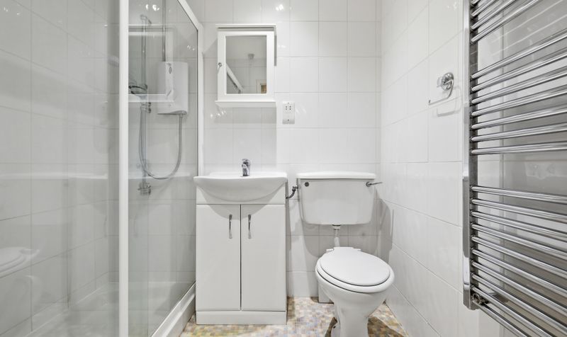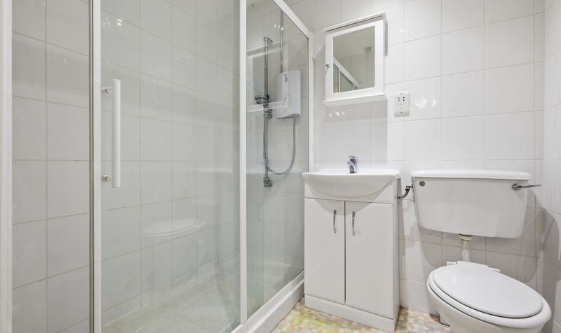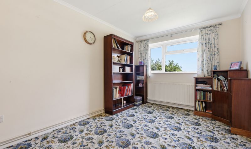 At the front of the bungalow is the principal bedroom. Dual aspect, it is a light and airy, spacious double bedroom which features built-in wardrobes and dressing table. The second bedroom is another well-proportioned, airy room with built-in wardrobes and dressing table. The third bedroom is a smaller single bedroom with outside access that could be easily repurposed as a study or craft room. A well-proportioned bathroom featuring white sanitaryware and a large shower completes the downstairs.