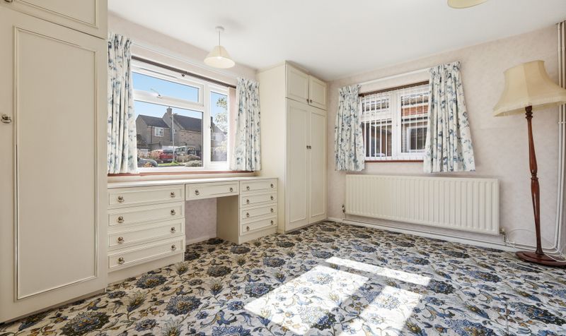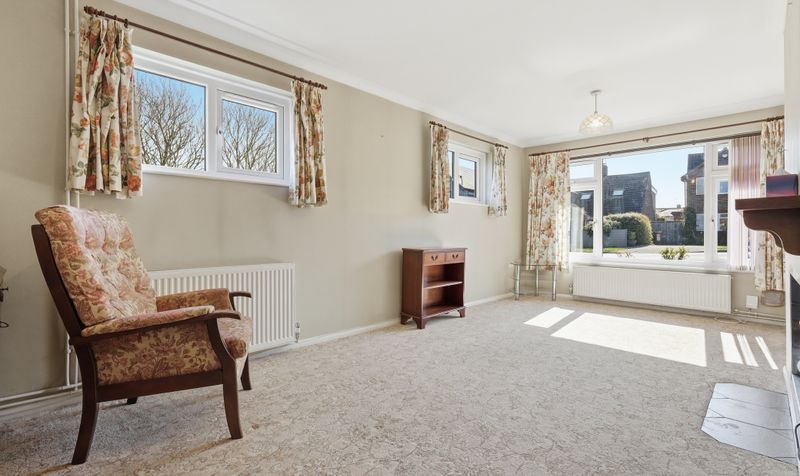 Entering the incredibly spacious hallway, the property feels bright and open. The bungalow is neutrally decorated throughout, although it could benefit from new carpets and some renovation work. Three cupboards in the entrance hall, including a large walk-in cupboard, offer an impressive amount of storage. The large, L-shaped sitting room enjoys a double-aspect and is a wonderfully bright space, with a fireplace with wooden mantel providing a lovely focal point. There is plenty of space to configure to suit your needs and it’s the perfect spot for relaxing after a busy day.