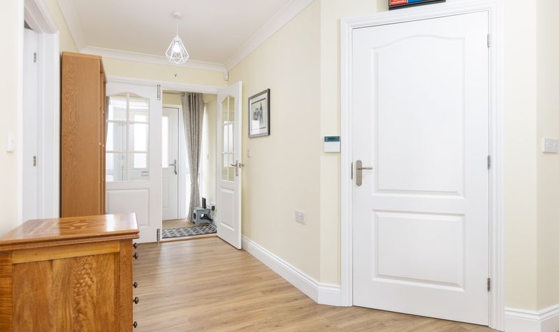 Entering via a large, covered porch, a set of impressive and practical double doors leads into an extremely spacious hallway. Wood-effect flooring runs through the hallway and into the kitchen/diner and utility, creating an appealing flow and adding to the sense of space throughout the living area.