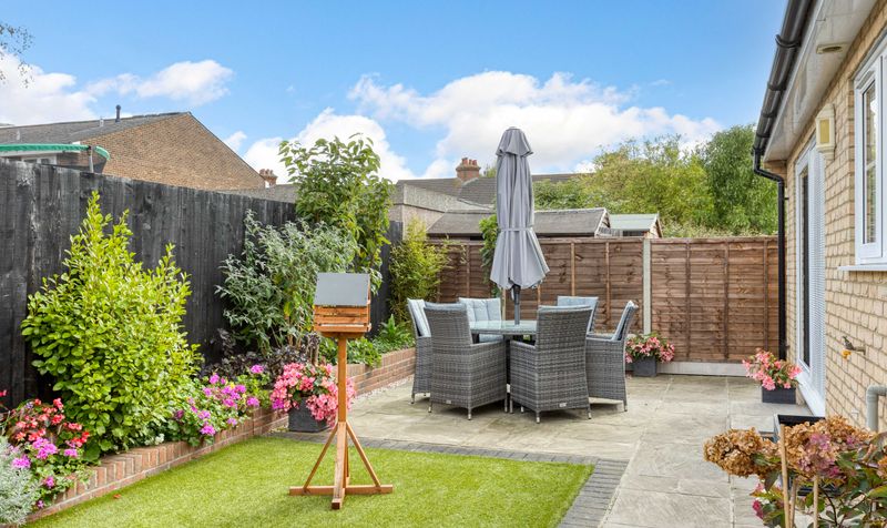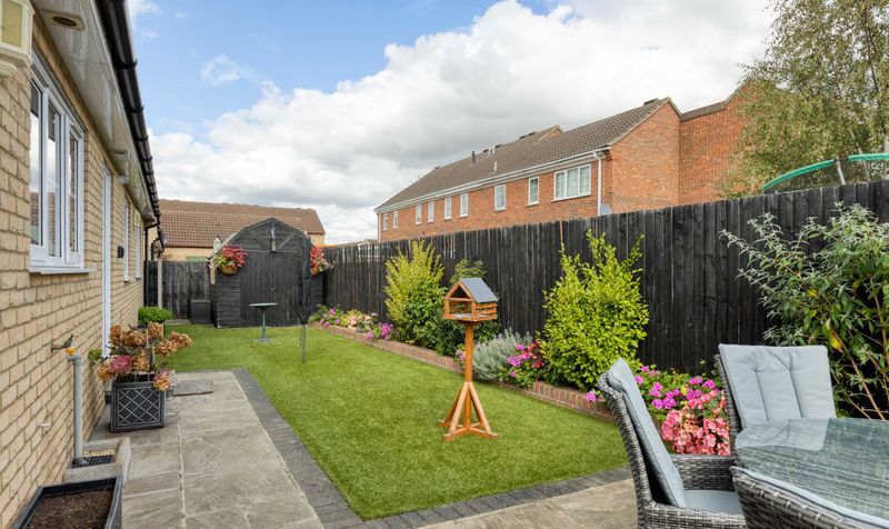 Outside, the east-facing garden is well-maintained and low maintenance. Featuring a patio area that is perfect for hosting barbecues or simply enjoying the sunshine, the garden also features a lawn, raised borders and a handy shed. The front of the property is gated – offering additional security – and has a spacious block-paved driveway with parking for multiple vehicles.