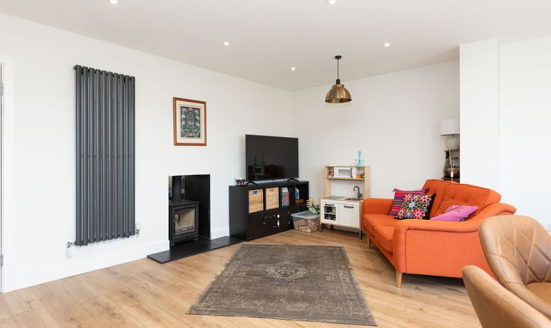 The family room offers all the benefits of modern open plan living. With room to add furniture to suit your own needs, the log burner is a superb addition to the space and helps creates a cosy and welcoming ambience despite the room’s overall generous proportions. A striking black vertical radiator is an attractive and practical design feature. Completing the downstairs are two handy additions - a modern cloakroom with white sanitaryware and a large understairs storage cupboard.