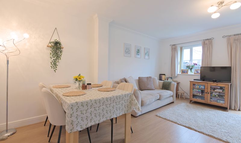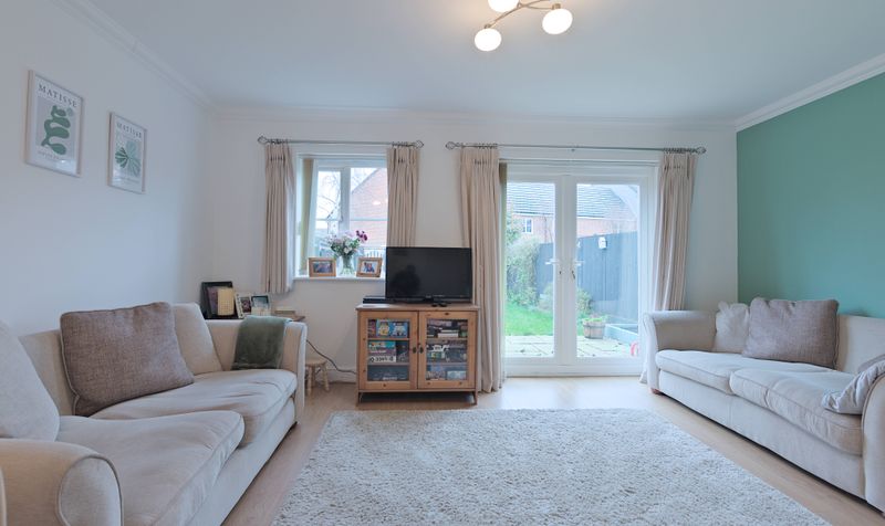 The open plan living / dining room is generously sized and forms the heart of the home. A feature wall in soft mint green adds interest, and the large, glazed patio doors make it a bright and airy space. Zoned into dining and relaxation areas, there is plenty of room to add furniture, including space for a dining table and chairs as well as a couple of comfy sofas. Whether you’re putting your feet up after a busy day, enjoying a relaxed family meal, or entertaining friends, this space provides the perfect setting. With doors opening on to the garden, it comes into its own during the summer months and provides an excellent set up for indoor-outdoor living. A modern cloakroom with white suite completes the downstairs.