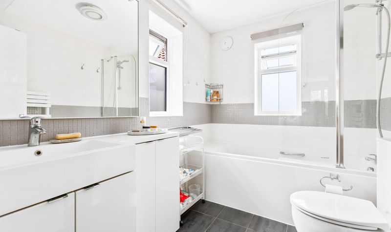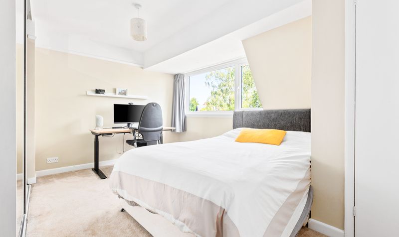 Upstairs are three well-proportioned and airy double bedrooms. Thanks to the neutral colour scheme which runs throughout the property, the upstairs feels wonderfully calm and relaxing. The principal bedroom benefits from built-in mirrored wardrobes and its own contemporary ensuite bathroom, which features a white bathroom suite and full-size bath with shower over. One of the other bedrooms also features built-in wardrobes and there is an additional large storage cupboard. The family bathroom is fully tiled with dual-toned tiles and colourful bathroom suite.