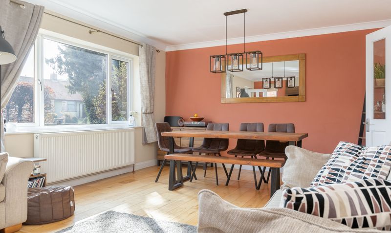 Located in the popular village of Little Wymondley, and strategically placed between Hitchin and Stevenage, is this well-presented family home. Entering the property via a generous porch which has plenty of room for coats and shoes, a part-glazed door leads you into the spacious sitting/dining room. This is a lovely bright room, thanks to its dual aspect and large window, with ample space for furniture. Easily zoned into separate relaxation and dining areas, there is room for a couple of comfy sofas, as well as a large dining table and chairs. Terracotta feature walls and beautiful oak flooring create a warm and welcoming atmosphere and it’s easy to picture yourself unwinding here after a busy day or enjoying a meal with family and friends.