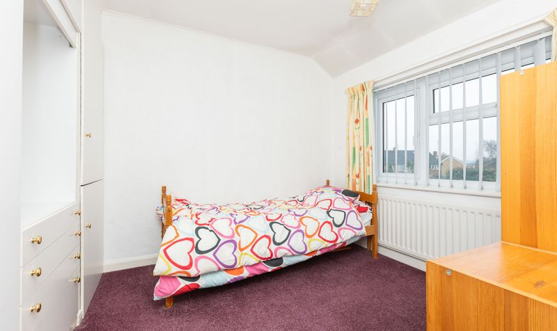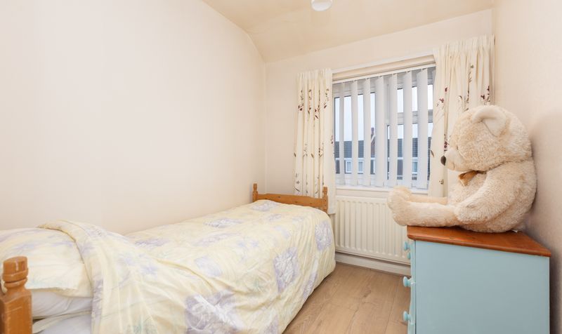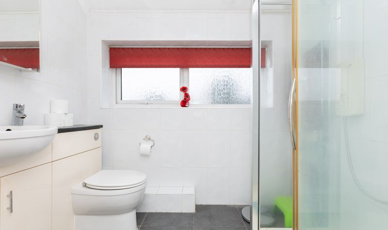 Upstairs are three well-proportioned bedrooms. The principal bedroom is situated at the front of the property and is an airy and bright room. There is plenty of room for additional furniture. The second double bedroom features built-in wardrobes and enjoys garden views. The third bedroom is a single room which could easily be repurposed as a home office. All the bedrooms have large windows that introduce plenty of natural light. The family bathroom is a spacious size and fully tiled in white with contrasting dark grey floor tiles. It features a white suite with large shower cubicle.