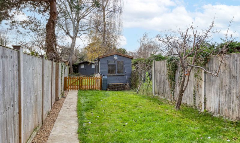 Outside, is a low-maintenance south-west facing garden, measuring 124’ in length and featuring both lawned and patio areas. A summerhouse/potential office with power and light provides useful and versatile additional space, as well as a shed for storage. It’s a great garden for entertaining family and friends during the summer months, with zones for seating as well as for children to play. The fenced front garden is shingled and low maintenance. A car park is located across the road.