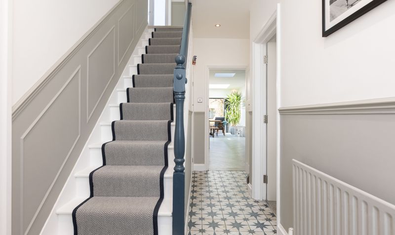 Stepping into entrance hall, you immediately notice the tasteful décor which combines both classic and contemporary styling. Decorated in a modern colour palette, details including the dado rail, bordered stair runner and star-patterned floor tiles give a nod to the property’s heritage whilst creating a stylish aesthetic. An understairs cupboard provides handy storage.