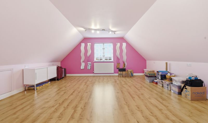 Above the garage is a fully converted loft space with heating and laminate flooring. Measuring an impressive 23’ by 17’1”, this versatile room could be put to many uses – including an additional bedroom, games room, gym or studio space.