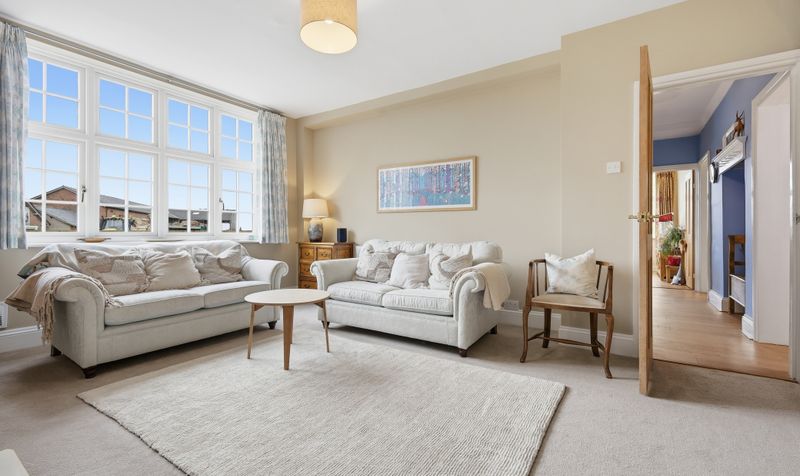 The second reception room is another well-proportioned and comfortable room. Again, decorated in warm neutrals, it benefits from an oat-coloured carpet and a large window which introduces plenty of natural light. A cast iron log burner set within a simple surround creates an elegant feature and the promise of cosy evenings in. As a second sitting room, this versatile room could easily be repurposed as a snug or even a playroom. Or, given the layout and fact that there is an adjacent shower room and office - which could also be used as a bedroom - the space could also lend itself well to being a separate living and sleeping area, offering semi-independent quarters within the property.