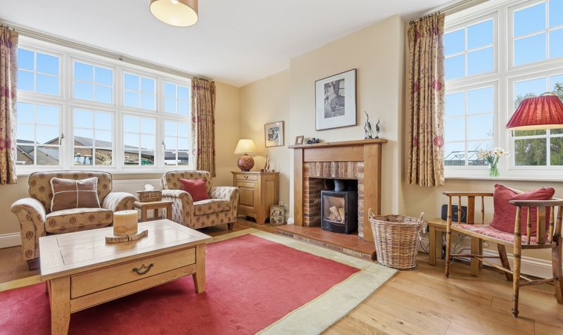 Upon entering the property, the first thing that strikes you is its beautiful interior but also the calm and welcoming ambience. The entrance hall has an appealing country charm with its cornflower blue walls and warm wooden flooring. Either side of the entrance hall are two reception rooms – both well-presented with classic styling. The sitting room to the left enjoys a double aspect, making it a lovely bright room, and is decorated in a warm, neutral colour palette with practical wooden flooring. There is plenty of space to add comfy sofas, and a fireplace with a log burner provides a lovely focal point, as well as the perfect setting for cosy winter evenings in front of the fire. It’s the perfect setting for spending time with friends and family.