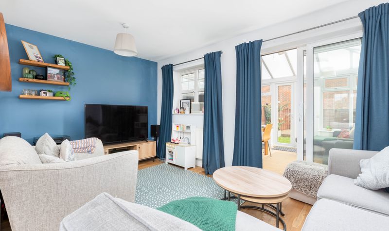 Leading on from the kitchen/breakfast room is a comfortable sitting room. This is another bright room, made to feel cosy with a navy feature wall. With plenty of room for a comfy sofa or two, it’s the perfect place for relaxing after a busy day. Glazed patio doors lead through to the conservatory and flood the room with natural light. The conservatory - currently used as a dining room - is wonderfully bright and spacious, with plenty of room for a dining table and chairs, in addition to other furniture. With doors opening on to the garden, it comes into its own during the summer months and is perfect for indoor-outdoor living. A modern cloakroom completes the downstairs.