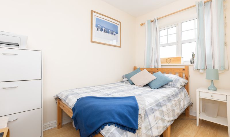 Heading up to the first floor, you’ll find three bedrooms – a spacious double bedroom, a smaller double room and a generous single - plus a family bathroom. The larger double bedroom spans the back of the house and has two windows overlooking the garden. Currently used as a nursery by the owners, it is a beautifully light and airy room with plenty of space for furniture. The other two bedrooms are equally light, with neutral décor, and either could also make a fantastic home office. The family bathroom has a neutral colour scheme and features a white suite, including a full-size bath with shower over.