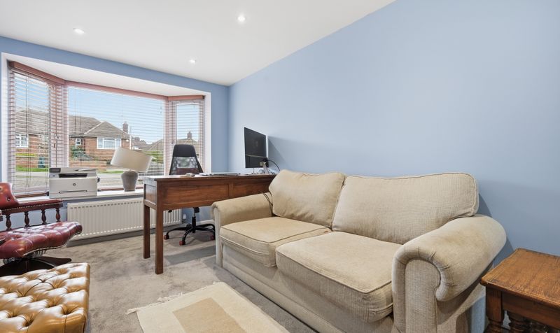 The snug leads through to another versatile room with an attractive bay window. Currently used as a large home office, this space could be repurposed for any number of uses, including a playroom, craft room or even a downstairs bedroom. Completing the downstairs is a modern cloakroom.