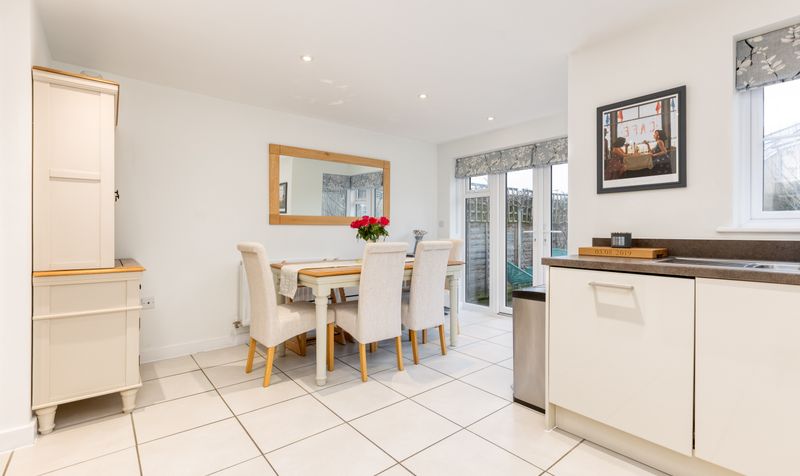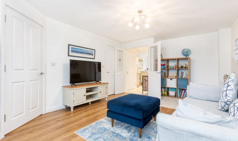 As you step inside the entrance hall, the property immediately feels modern and welcoming. Warm wooden flooring runs through into the sitting room, creating a warm and stylish first impression. The sitting room is well-proportioned and has plenty of room for a comfy sofa or two, as well as additional furniture. The box bay window is a lovely feature with its modern shutters, and the room provides the perfect setting for relaxing or hosting friends and family.