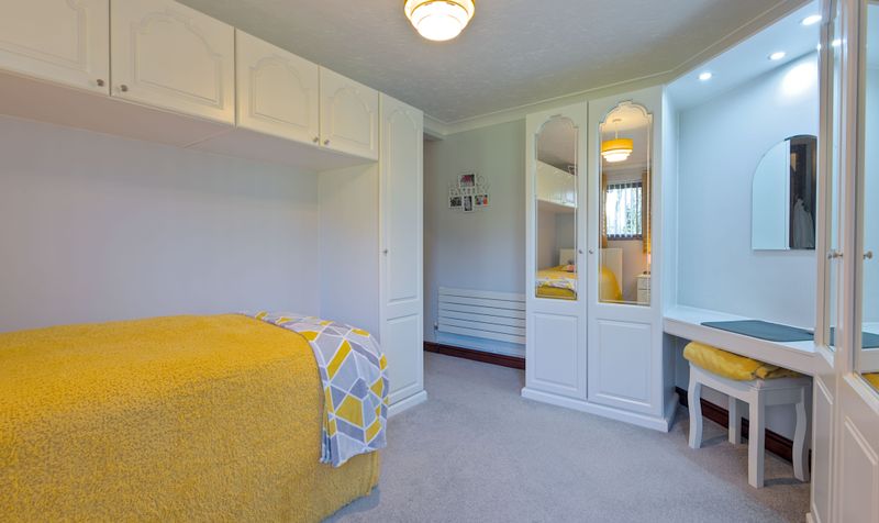 To the front of the property is a fully independent and detached annexe. Generously sized, and with a boarded loft, the accommodation provides a rare and fantastic opportunity for anyone looking for separate living quarters for family members – perfect for elderly parents downsizing or older children who wish to live more independently. With a floorspace that would rival many stand-alone apartments, the annexe features well-proportioned rooms throughout. Leading off from the entrance hall, the sitting room features walnut laminate flooring, which is both practical and stylish, providing the perfect spot to relax and unwind. The kitchen has a neutral décor scheme and includes an integrated electric oven and hob. Although compact in size, it is a bright and practical space. The two bedrooms are both well-proportioned and carpeted, with the main bedroom benefiting from French doors leading out to the garden. A shower room with modern white suite completes the annexe living space. Outside, the annexe has its own single garage which provides ample additional storage and could alternatively be used as a workshop space.